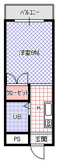| 間取り | 1K(洋6・K2.5) | 主要採光面 | 南 |